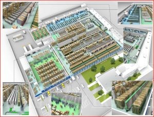 Dimensioni: 12.500 mq a terra per operazioni di stoccaggio e movimentazione, 4.000 mq di depositi interrati e 1.000 mq di soppalco a uso tecnico.
