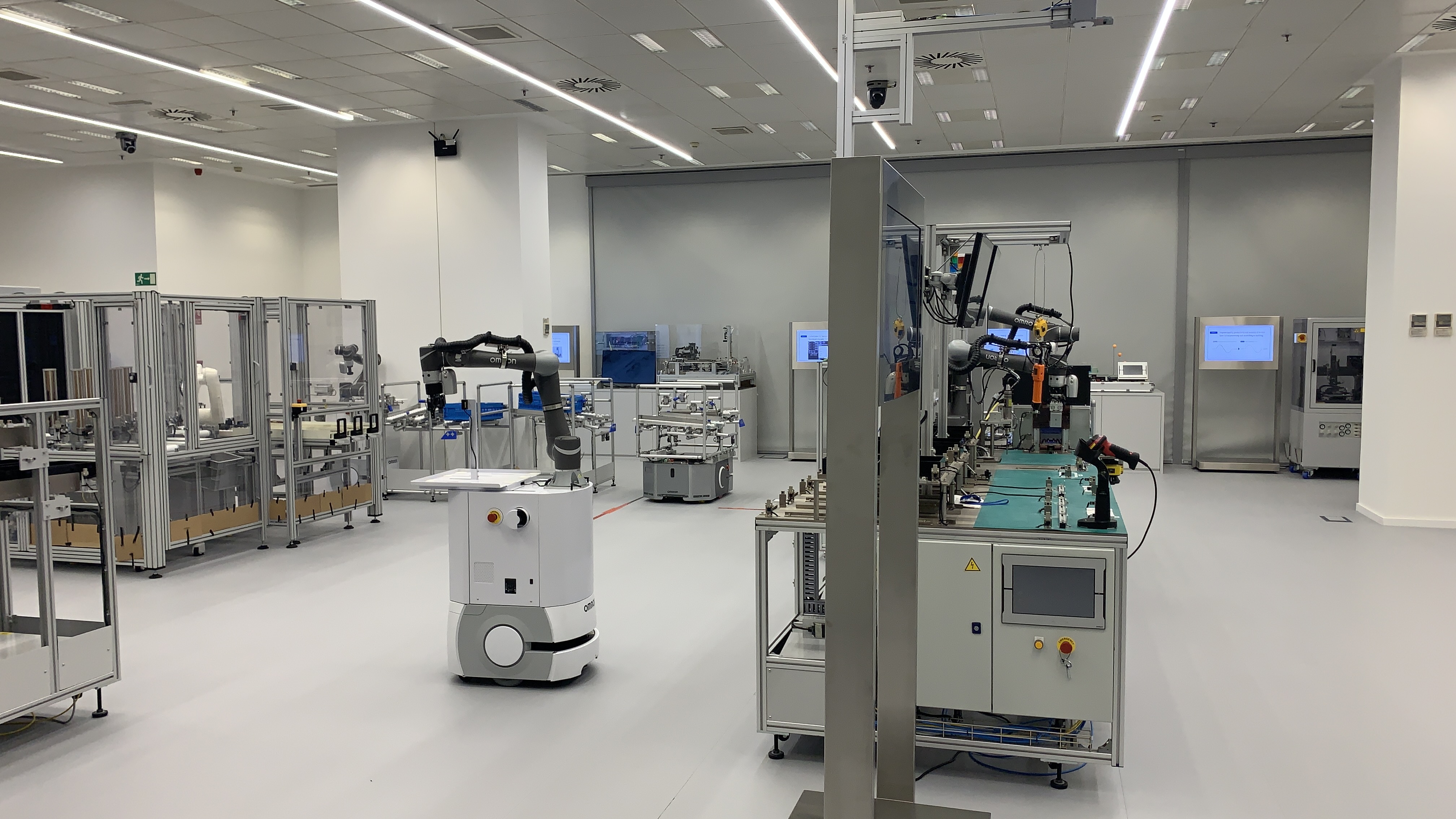 La produzione intelligente a celle mostra robot e umani che lavorano insieme in armonia, come una soluzione interattiva. I compiti e i procedimenti degli operatori sono visualizzati per permettere il miglioramento dei procedimenti autonomi e una produzione impeccabile.